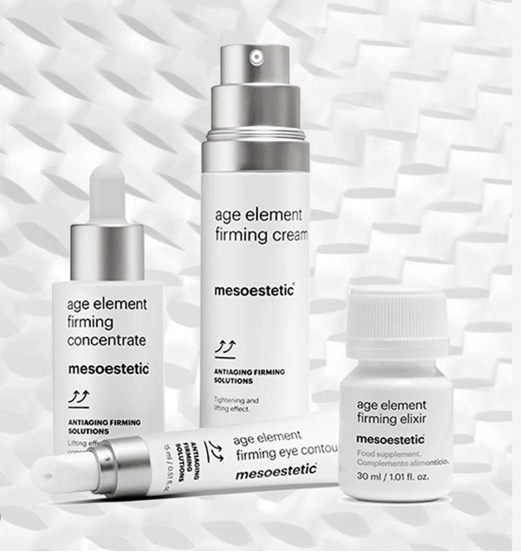 Age Element е продуктова серия, която се бори срещу признаците на стареенето на кожата. След много години изследвания Mesoestetic разработи решение, базирано на епигенетиката. Марката притежава патент за разработването на система, която действа на основните маркери на стареенето. Проучванията показват, че продуктите от гамата, след продължителна употреба, помагат за повишаването на експресията на маркера за клетъчно дълголетие – SIRT1, което е безспорно доказателство за мощното действие на продуктовата серия Age Element.