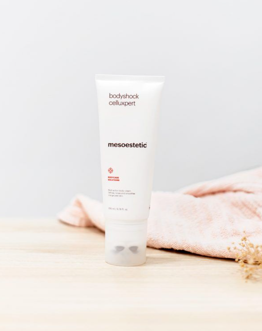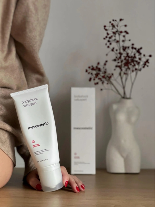 Pay image „Mesoestetic Bodyshock Celluxpert“ представлява крем-гел с многостепенна формула, предназначена за третиране на кожата с „портокалова кора“. Той действа върху участъци с видими нередности по повърхността на кожата, подпомагайки изглаждането, подобряването на плътността и възстановяването на по-равномерен вид. Комбинацията от активни съставки има синергично въздействие: кофеинът стимулира липолизния процес, екстрактът от Brassica Alba и капсаицинът подсилват стимулиращото действие, L-карнитинът подпомага метаболизма на мастните киселини, а екстрактът от арника и органичният силиций допринасят за укрепване и дренаж на тъканите. Формулата е завършена с иновативен апликатор с рол-он сфери, който оптимизира нанасянето, подобрява усвояването и осигурява усещане за освежаване и стимул.