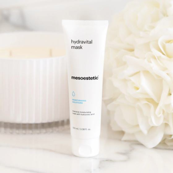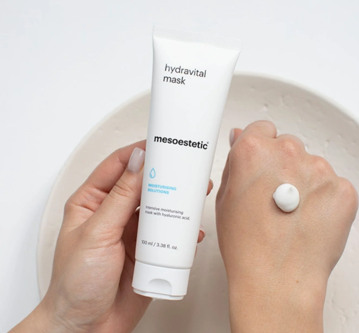 Hydravital Mask – mesoestetic е интензивна хидратираща и възстановяваща маска, създадена да върне комфорта, мекотата и сиянието на кожата. Формулата съдържа хиалуронова киселина и подхранващи активни съставки, които осигуряват дълбока и продължителна хидратация, възстановяване на липидната бариера и успокояване на усещането за сухота и опънатост. Маската е подходяща за суха, дехидратирана, чувствителна или стресирана кожа, както и за възстановяване след козметични процедури. Тя подобрява еластичността, възвръща свежия вид и придава комфорт и плътност дори на най-жадната кожа.